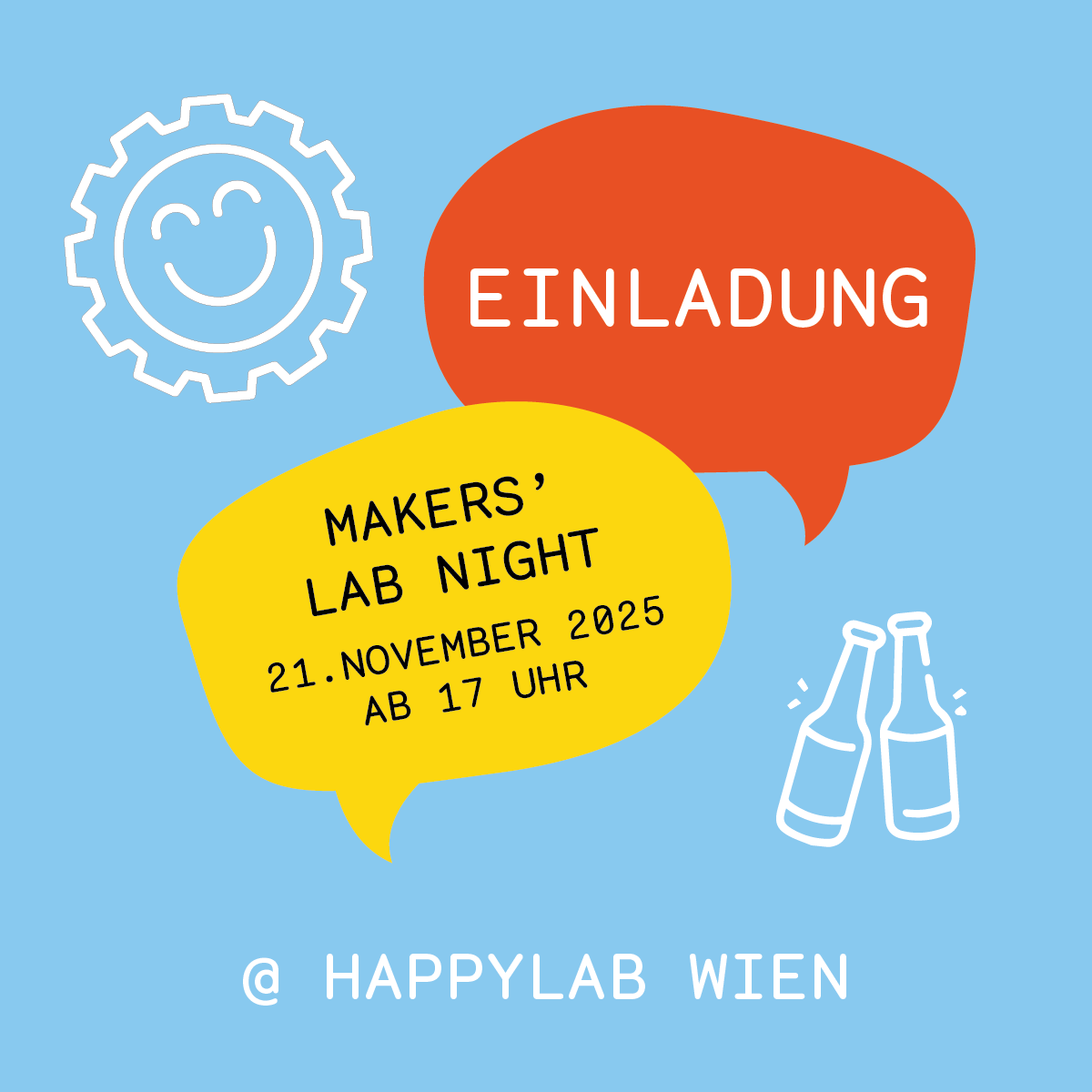 Am Freitag, 21. November 2025 von 17:00 bis 22:00 Uhr ist es wieder so weit: Wir laden euch herzlich zur Makers’ Lab Night ins Happylab Wien ein!